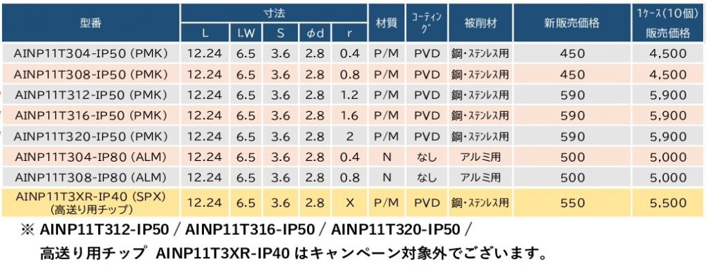 対象のカッターとサービスチップは以下よりお選びください。